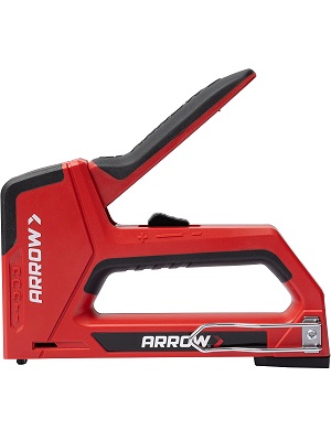 The Arrow T501 5-in-1 Manual Staple Gun is a versatile, compact tool designed for professionals and DIYers alike. Compatible with five types of Arrow fasteners, it features adjustable power settings for tailored penetration, an ergonomic grip to reduce fatigue, and a bottom-load system for quick reloading. Its color-coded guide ensures fastener accuracy across materials like wood, carpet, and fabric, making it the ultimate multi-tasking staple gun for efficient, precise fastening.